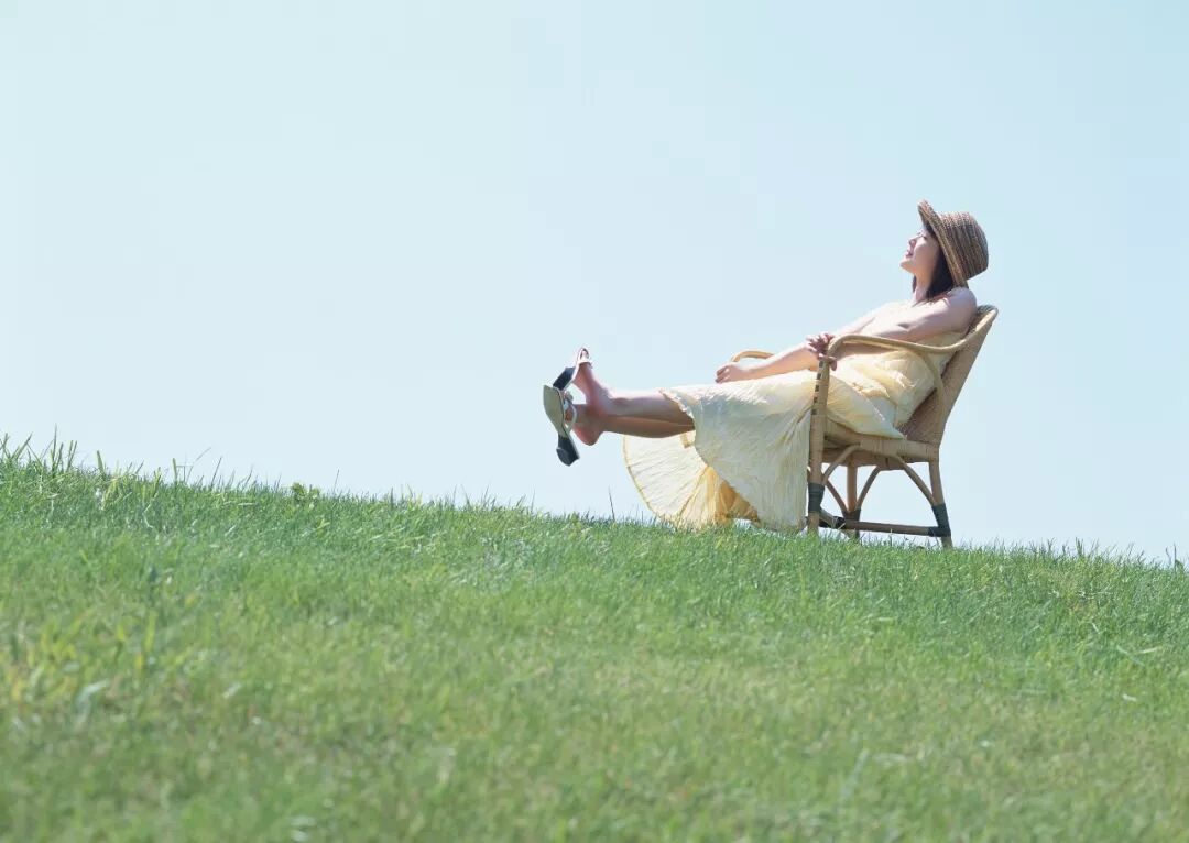 坐在椅子上,闭上双眼,把注意力放在两个肩膀上,呼吸放松。